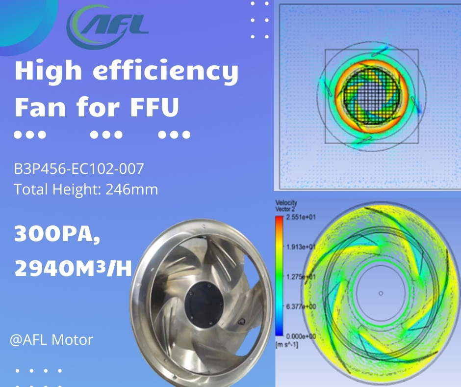 Customer Success Story — High-Efficiency Fan for FFU Cleanroom ApplicationsOctober 24, 2025Cleanroom reliability depends on stable airflow, pressure balance, and energy efficiency. One of AFL’s long-term customers—an international Fan Filter Unit (FFU) manufacturer—recently replaced its legacy fan system with AFL’s high-efficiency EC mixed-flow centrifugal fan (246 mm total height). The result: higher static pressure, smoother airflow, and reduced power draw. AFL’s spiral double-curved impeller and EC motor integration delivered 68 % total efficiency, maintaining 2940 m³/h airflow at 300 Pa, while cutting operating costs and improving cleanroom pass rates. This success demonstrates AFL’s commitment to helping FFU, semiconductor, and pharmaceutical equipment OEMs achieve superior performance, lower energy consumption, and full regulatory compliance.